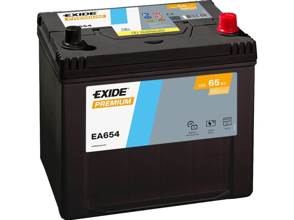 Nejnovější baterie EXIDE Premium s Carbon Boost 2.0 se teď, díky speciální aplikaci aditiv uhlíku společnosti Exide na záporné desky baterie, nabíjí až 2x rychleji ve srovnání s ostatními konvenčními bateriemi. Odolává extrémním teplotám, zvládá intezivní městký provoz. Autobaterie není vhodná pro vozy se START STOP systémy.